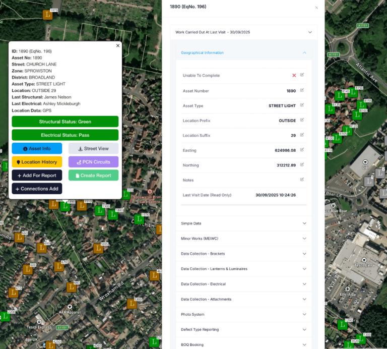 The asset information window includes asset data that has been collected inline with the “Well Managed Highway Infrastructure” code of practise.